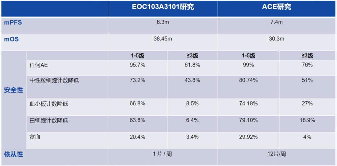 在安全性方面,恩替司他最常见的≥3级血液学不良反应包括中性粒细胞减少症(43.8%)、血小板减少症(8.5%)和白细胞减少症(6.4%),而最常见≥3级非血液学治疗相关不良反应(TRAE)为天门冬氨酸氨基转移酶升高(2.6%)。此外,恩替司他的平均消除半衰期长达61.9小时,1周1次的长间隔用药,能够大大减轻药物负担和提高治疗依从性。因此,无论从疗效还是安全性、用药便捷性等方面,恩替司他在同类药物临床试验中均表现非常出色。