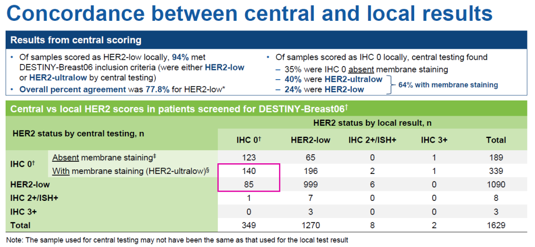 DESTINY-Breast06研究地方实验室与中心实验室的判读结果