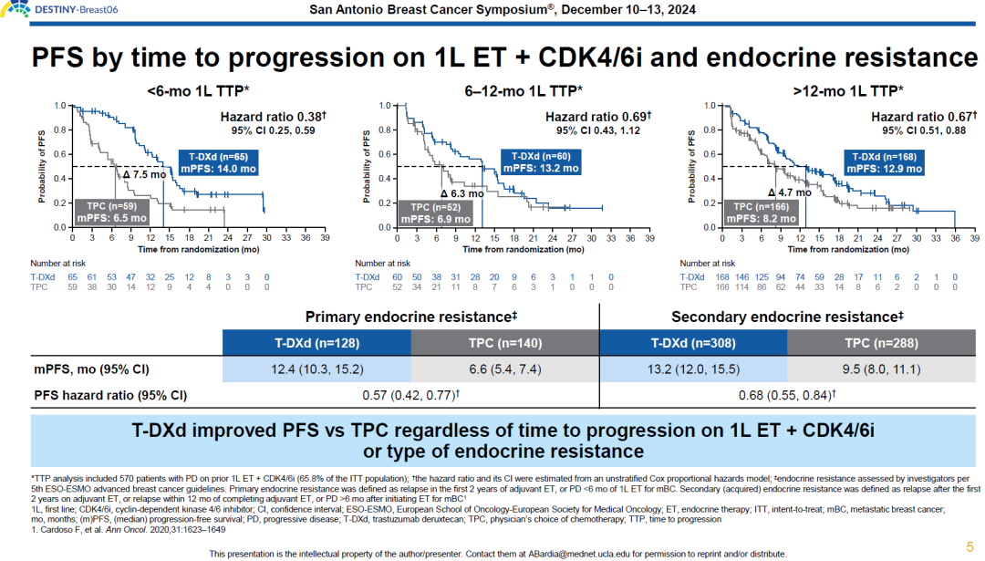 [5]Aditya Bardia.LB1-04:Efficacy and safety of trastuzumab deruxtecan(T-DXd)vs physicians choice of chemotherapy(TPC)by pace of disease progression on prior endocrine-based therapy:additional analysis from DESTINY-Breast06.2024 SABCS abs#3676
