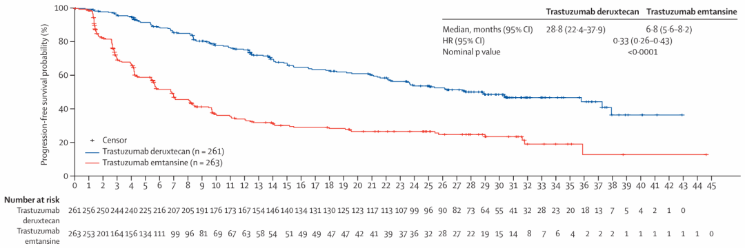 图2.DESTINY-Breast03研究PFS[2]