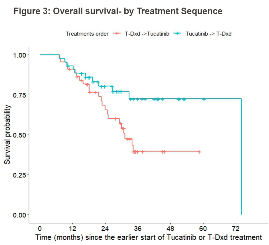 [1]、Vicente Valero,et al.Sequencing HER2 targeted therapies in HER2 positive metastatic breast cancer:Outcomes of tucatinib prior or after fam-trastuzumab deruxtecan(T-Dxd).2025 ESMO BC.Abstract 337P.