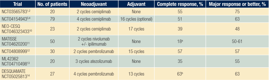 表1.cSCC新辅助免疫治疗的2期试验