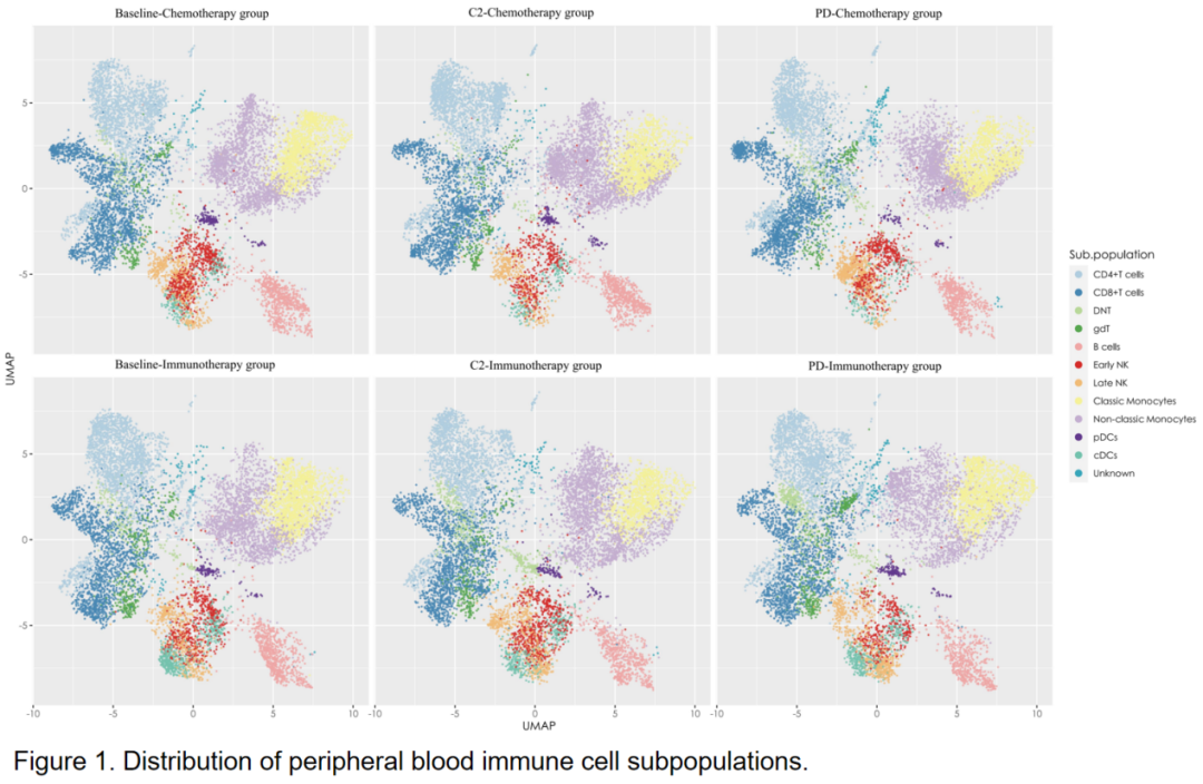 外周血单核细胞的高维分类信息可提供丰富的疗效和预后相关数据,有望为肿瘤免疫治疗领域提供更多的有效标志物及相关机制探索方向。而目前在广泛期小细胞肺癌(ES-SCLC)免疫治疗领域,能预测疗效和预后的标志物有待探索和明确。
