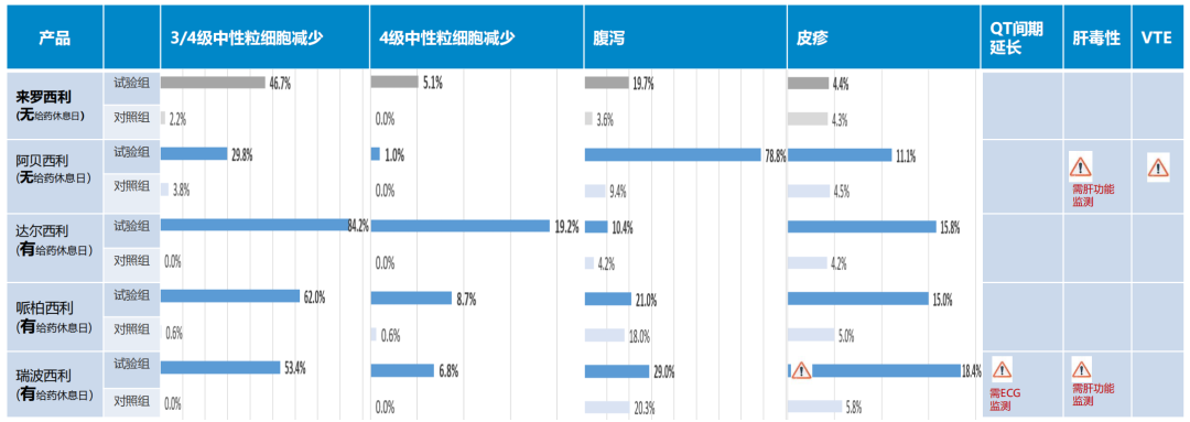 △不同CDK4/6i的安全性特征(非头对头研究对比,请谨慎解读)和监测要求[4-9]