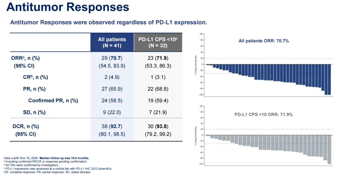 目前a/mTNBC一线标准治疗依赖化疗±免疫检查点抑制剂(如帕博利珠单抗、特瑞普利单抗),化疗药物选择多为紫杉类药物,紫杉类药物耐药可选择吉西他滨联合顺铂。近年来,紫杉类药物已经在三阴性乳腺癌的新辅助治疗和辅助治疗广泛应用,在晚期一线治疗可能会产生交叉耐药,尤其对无病间期(DFI)小于6个月或12个月的患者。紫杉类耐药后,吉西他滨联合顺铂疗效也有限。而免疫治疗仅对PD-L1阳性患者有效(CPS≥10或CPS≥1),覆盖人群不超过50%。在这项研究中,芦康沙妥珠单抗单药疗效显著优于化疗,且覆盖全人群(无论PD-L1状态),有望成为一线治疗新选择。