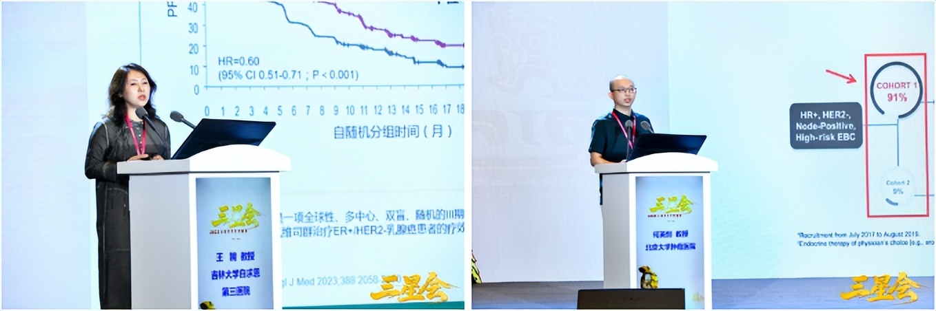 专题报告环节同样精彩纷呈。吉林大学白求恩第三医院王婉教授介绍了“INAVO120驱动乳腺癌PIK3CA精准路径变革”,展示了新型PI3Kα抑制剂在乳腺癌治疗中的显著疗效,为乳腺癌精准治疗开辟了新的路径。北京大学肿瘤医院何英剑教授从统计学角度,深入解读了HR+早期乳腺癌辅助强化热点研究,为临床决策提供了科学依据与指导。