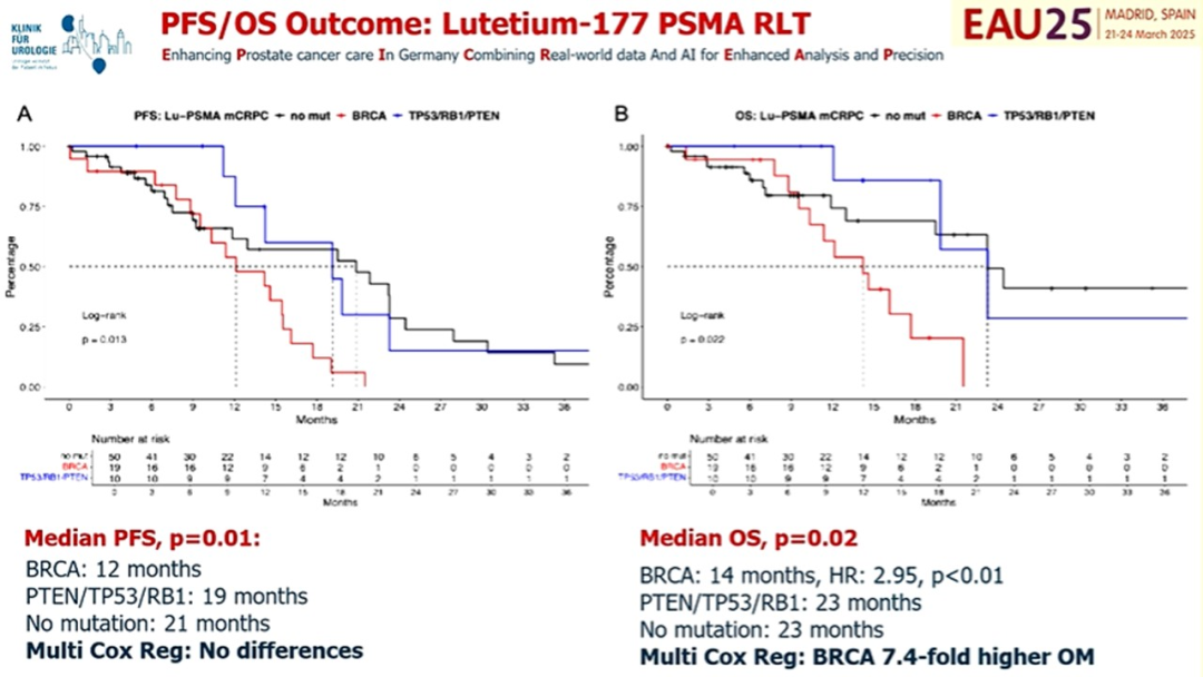 PSMA核素疗法作为新兴治疗手段,备受关注。陈教授分享了2025年EAU及ASCO会议的相关数据,并指出尽管目前研究存在一些矛盾结论,但总体来看,BRCA、TP53、RB1和PTEN等基因突变患者在接受PSMA核素治疗后的预后较差。因此,未来仍需更深入探索此类突变对核素疗法疗效的精准预测作用。