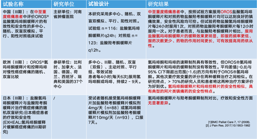 表2.国内外氢吗啡酮缓释片临床研究对比