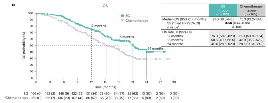 ESMO靶向抗癌治疗亚洲大会(ESMO TAT ASIA)进一步更新了EVER-132-002研究中国人群数据。该研究中国患者占比7成,结果显示mPFS为5.5个月vs 4.1个月,HR 0.622(95%CI:0.457-0.846),mOS分别为为20.5个月vs 15.1个月,HR 0.583(95%CI:0.401-0.847)[10]。该数据再次夯实了SG在中国患者中治疗的循证依据,验证了显著的PFS获益和具有临床价值的OS获益。