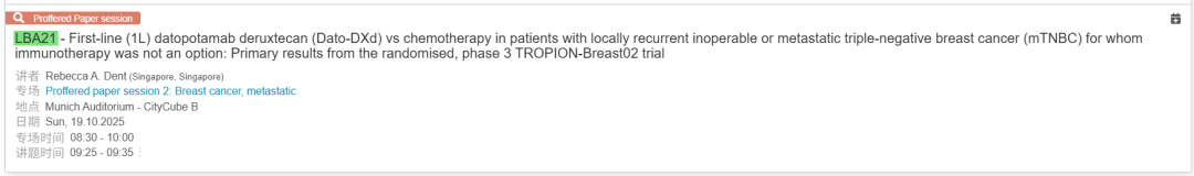 2025年10月19日09:25-09:35,TROPION-Breast02研究公布