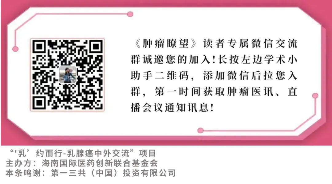 另一方面,Dato-DXd治疗相关的中性粒细胞减少发生率较低,但研究中没有对患者进行最低点血常规检测,所以需要观察临床研究外的表现;同时,Dato-DXd治疗相关的口腔炎、干眼症发生率较高,以我的个人经验,干眼症大多对患者影响不大且通常可控,但口腔炎需要进行处理,预防的进展主要是使用含类固醇漱口水,可使患者达到对治疗的最佳耐受。
