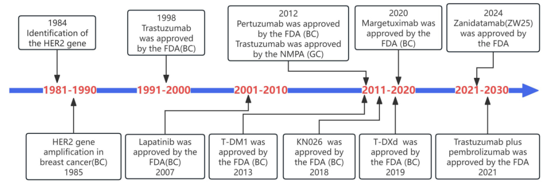 图2.HER2及其靶向药物的研发历程