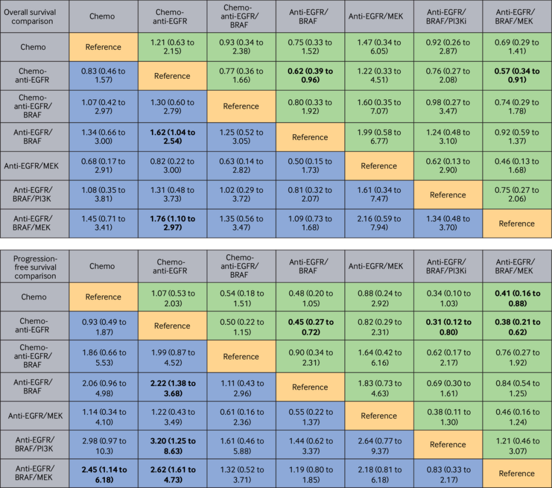 而通过一项研究解决上述问题的有效方法,就是整合所有BRAF突变肠癌研究数据进行网状荟萃分析。而通过一项研究解决上述问题的最佳也是唯一方法,就是整合所有BRAF突变肠癌研究数据进行网状荟萃分析,然而这项工作对数据规模和统计方法都提出了极高要求,同时面临模型架构复杂、统计验证层级多的技术瓶颈。为此,团队构建了目前样本量最大的BRAF突变晚期肠癌研究队列(涵盖4633例患者),创新性地采用三重研究模型——单臂荟萃分析、直接配对荟萃分析与间接网状荟萃分析相互印证,基于两个关键维度(一线治疗、二线及后线治疗)系统追踪评估五大临床终点(总生存期、无进展生存期、客观缓解率、疾病控制率与3级以上不良事件),全面解析不同治疗方案的疗效与安全性。