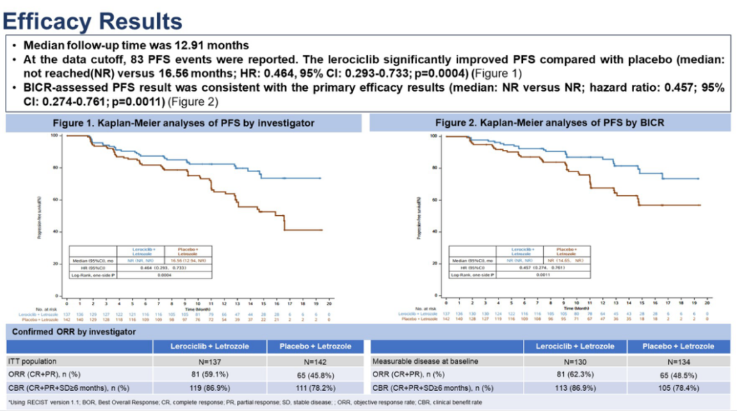 [4]、Xichun Hu,et al.LEONARDA-2:Lerociclib plus letrozole versus placebo plus letrozole in HR+/HER2-advanced or metastatic breast cancer.2024 ASCO abstract 1052