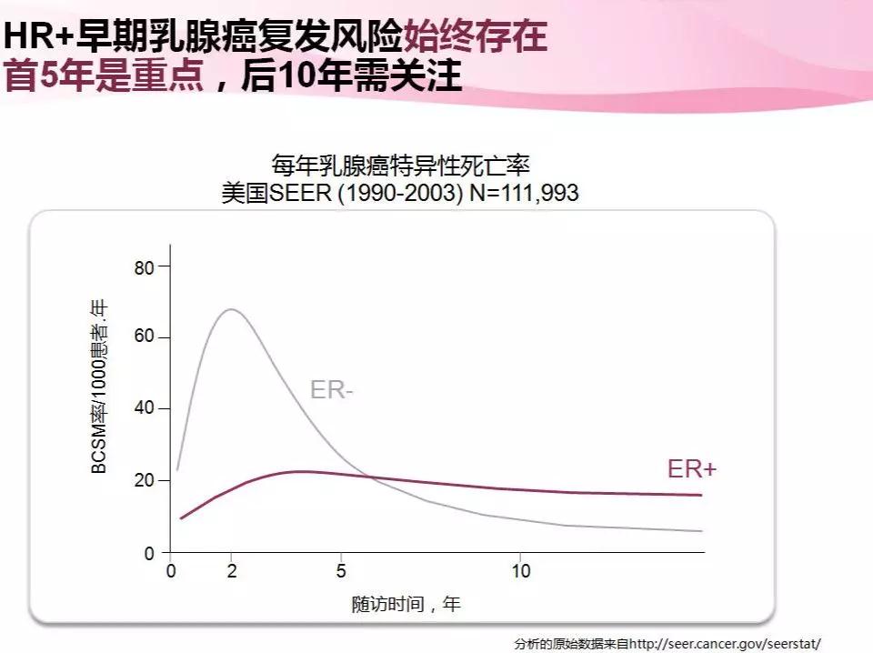 总而言之,HR阳性早期乳腺癌持续存在的复发风险对我们的临床决策肯定是有影响的。在越来越多的循证医学证据的支持下,越来越多的临床医生和患者都认同和接受强化内分泌治疗的策略优化,以期进一步将复发风险降到最低。