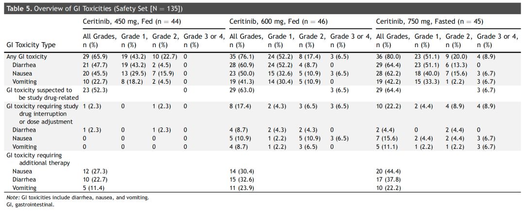 表1 ASCEND-8研究中GI不良反应结果