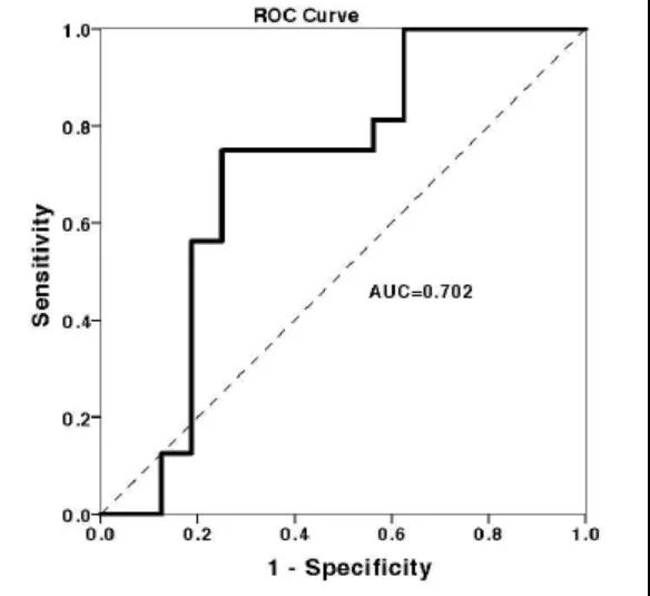 图1 受试者工作曲线显示,随访的第一年的s-胃泌素水平(pg/ml)与可提示复发