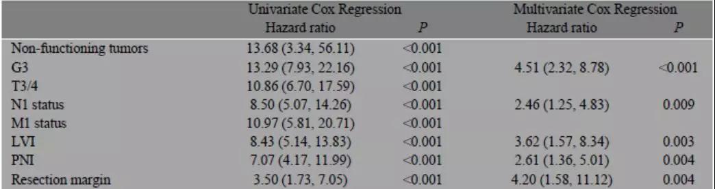结论:胰腺神经内分泌肿瘤手术切除数量随着时间的推移而增加,主要是由于偶发的非功能性胰腺神经内分泌肿瘤数量的增加。G3级胰腺神经内分泌肿瘤、淋巴结转移、淋巴血管侵犯、周围神经侵犯和阳性切缘是胰腺神经内分泌肿瘤患者外科切除术后较短无病生存期的重要预测因素。