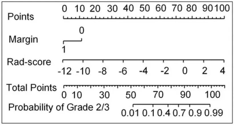 结论:该研究提出了一种由肿瘤边缘和组合的影像组学特征组成的综合列线图,作为术前预测G1级和G2/3级PNET的有力工具,有助于PNET患者的临床决策。