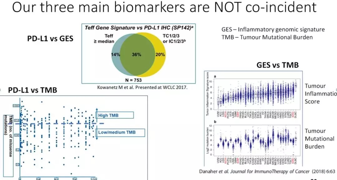 Kerr教授指出,目前免疫疗法组织检测的三种方式:PD-L1、TMB以及炎症相关基因表达检测(GES)的结果并非完全一致,且很多指标都是连续变量,单纯以高或低的二分类法可能忽略不同级别的生物学意义。对于免疫治疗疗效的预测,我们应通过补充诊断或伴随诊断综合评价分析。