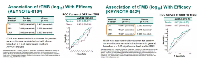 在KEYNOTE-010研究、KEYNOTE-042研究中,分别有254例、793例患者具有足够的组织DNA,并成功进行WES以评估TMB,共计253例、793例患者纳入tTMB可评估人群。
