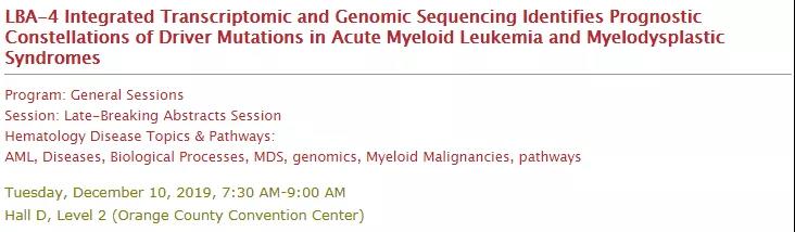 LBA-4:Integrated Transcriptomic and Genomic Sequencing Identifies Prognostic Constellations of Driver Mutations in Acute Myeloid Leukemia and Myelodysplastic Syndromes