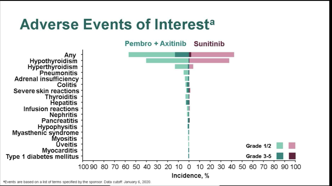 研究结论:Pembro+axi与舒尼替尼相比,Pembro+axi在一线治疗aRCC患者中继续显示出优越和持久的抗肿瘤活性,中位随访时间为27个月;未观察到新的不良反应。