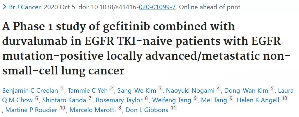 吉非替尼联合Durvalumab一线治疗携带EGFR敏感突变患者的疗效及安全性:一项I期临床研究
