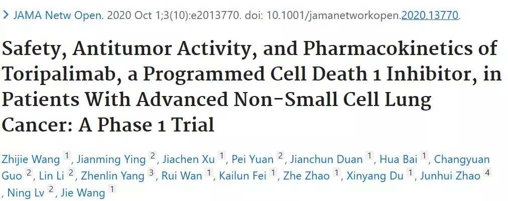 特瑞普利单抗是一款针对PD-L1的免疫检查点抑制剂,近期,来自国家癌症中心的王洁教授等人分析了该药后线治疗晚期NSCLC的安全性及疗效。研究结果于10月1日发表于JAMA Network Open杂志。
