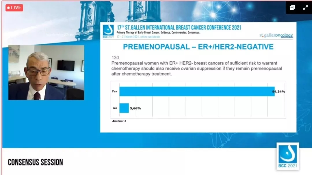编者按:第十七届圣加伦国际乳腺癌大会(SG-BCC 2021)于欧洲中部时间(CET)2021年3月17日~3月21日以线上会议形式召开。《肿瘤瞭望》特邀两位国内肿瘤大咖纵览SG-BCC大会热点,分析HR阳性早期乳腺癌亮点研究,探讨共识专家投票结果。