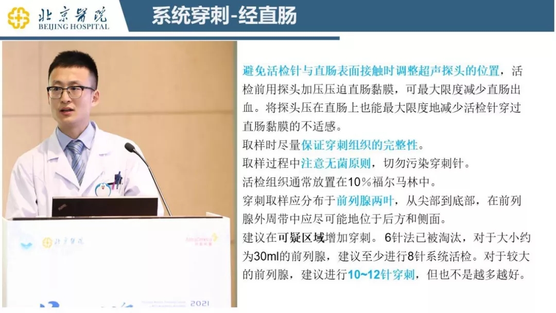 编者按:北京医院前列腺癌MDT团队组建成立2周年,值此之际,由北京医院泌尿外科牵头的前列腺癌MDT学术系列活动精彩上线。前列腺穿刺是诊断前列腺癌的金标准,穿刺技巧、经验、病理判读及穿刺并发症的防治是前列腺穿刺准确诊断和保证穿刺患者诊疗安全的关键。北京医院泌尿外科前列腺穿刺方式包括经直肠系统性前列腺穿刺活检/经会阴系统性前列腺穿刺活检、经会阴模板引导认知融合/自由手认知融合穿刺、MRI-超声软件融合前列腺穿刺活检及亚洲唯一的MRI引导前列腺穿刺活检。本期《肿瘤瞭望》带来北京医院前列腺癌MDT团队的前列腺穿刺技巧、病理及并发症防治经验分享。