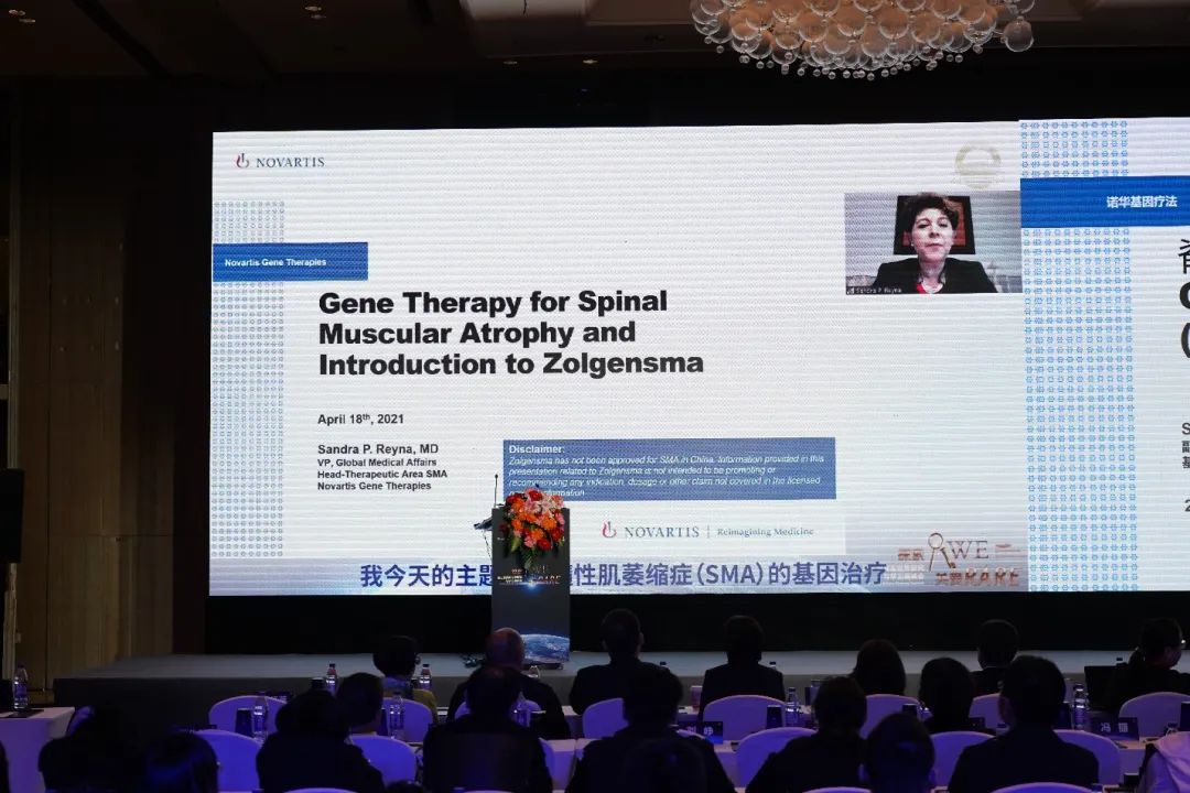 诺华基因治疗医学事务副总裁Sandra Reyna博士,介绍了基因治疗的研发历程,脊髓性肌萎缩症(SMA)的疾病特点,并介绍了首个治疗SMA的基因治疗药物Onasemnogene abeparvovec (Zolgensma)的作用机制、重要临床研究和显著的疗效。