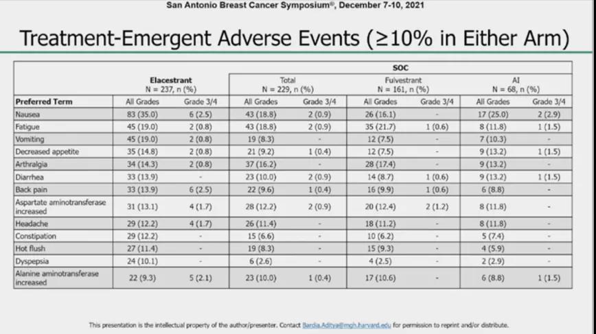 总之,作为新型口服SERD药物艾拉司群,具备口服方便、安全可靠的先决条件,初步Ⅲ期临床研究结果值得临床医生的更多期待。