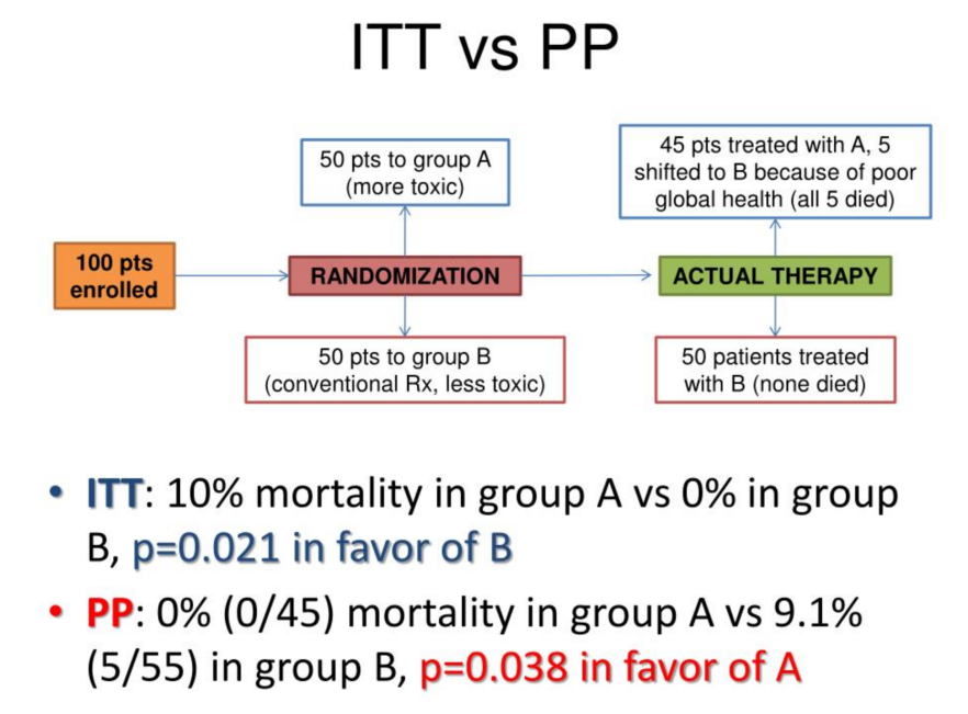 5、研究分析人群:在临床试验中,意向性分析人群(ITT)是最常用的最终疗效分析人群,该人群纳入所有签署知情后进入研究的患者,由于部分患者可能存在方案违背、首次疗效评估前的脱落等因素,ITT分析虽然客观,但并不完全合理。这种情况下,需要对某些患者进行剔除以组建一个新的疗效分析集合——符合方案集(PP分析)。而由ITT分析转为PP分析过程中,需要遵循怎样的原则进行剔除,不同的研究所遵循的准则不完全一样。通常,剔除标准会事先写在研究方案中,并在最终锁库及数据揭盲之前,由研究专家、统计师等共同商议决定。