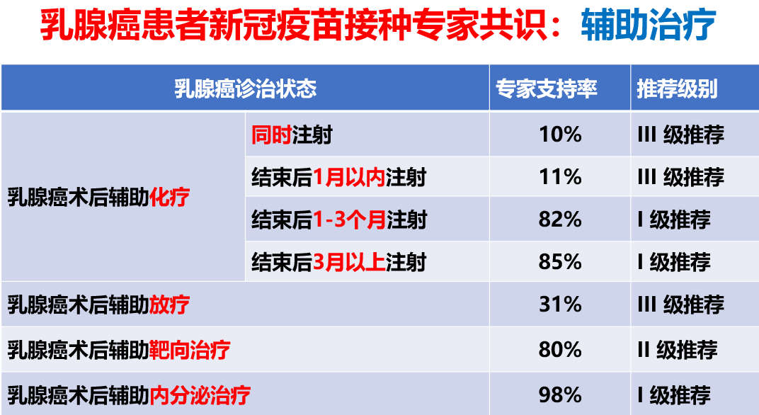 聂建云教授:在常态化疫情防控下,我们既要认真做好“抗癌”,也要坚持做好“抗疫”。首先,我们遵照国家、省卫健委及疫情防控部门提出的医院防疫措施,比如“三查一必问”(必查通行健康码行程码、体温、口罩佩戴情况,询问旅居史及是否有发热、咳嗽等新冠相关症状)。其次,在病房容量和病人流量方面的管控,在疫情以前我们的床位使用率经常是达到甚至超过100%的,但在疫情时期我们要按照规定保证一定的床位使用率,做到恰当的间隔,以及做到固定陪床人员等。第三是要控制门诊量,对于一些乳腺良性疾病,没有必要在疫情非常时期到医院就诊;对于病情稳定的乳腺癌患者,也可以适当延长复查、评估的间隔,非必要来院的情况,我们都会发布温馨提示,建议患者通过线上咨询平台获得医疗服务。第四是鼓励乳腺癌患者接种新冠疫苗,建立免疫屏障。《乳腺癌患者接种新冠疫苗中国专家共识》对初诊和手术患者、新辅助治疗患者、辅助治疗患者、复发转移患者以及参加临床研究的患者,均给出了相应的接种新冠疫苗建议。