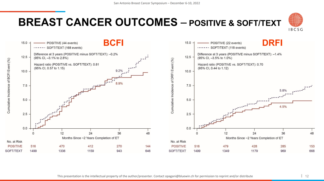 △POSITIVE研究中停止内分泌治疗患者的BCFI、DRFI与SOFT/TEXT研究的比较