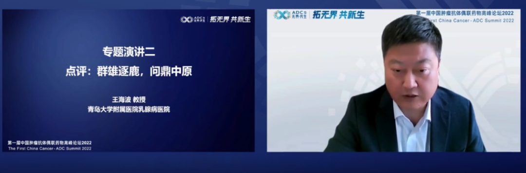 青岛大学附属医院王海波教授对王涛教授的讲课进行了点评,他表示,以T-DXd为代表的新型ADC药物的出现,使我们看到了更多的治疗希望和治愈曙光,由于其独特的作用机制,T-DXd在多项研究中已经取得了较好的治疗数据。如今我们已经进入了ADC药物的时代,ADC药物在乳腺癌治疗领域取得的成就越来越令人瞩目,并对晚期乳腺癌患者的治疗格局也在不断进行着重塑,期待今后能有更多更好的数据公布。