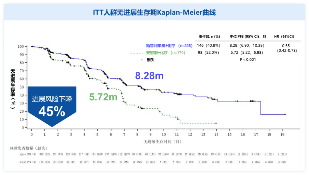 该研究之所以选择PFS而不是OS作为主要终点,有两个重要原因:首先,中国药监局已同意在不可切除局部晚期或转移性NSCLC一线治疗的临床研究中以PFS作为主要终点支持新药上市申请,只要PFS的延长具有临床意义和显著统计学差异即可申请上市,并不强制要求OS结果具有统计学差异才能申请上市。其次,目前免疫治疗已经是一线化疗进展后患者的标准治疗,本研究也允许化疗组患者进展后交叉接受斯鲁利单抗治疗,因此会稀释一线治疗的获益,对OS结果的评估带来影响。当然,这种后续治疗或交叉治疗对OS的影响在其他许多晚期实体瘤一线治疗研究中也普遍存在。